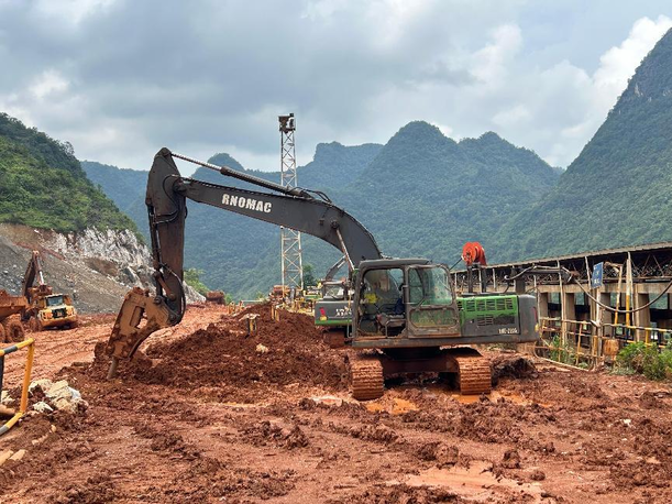 在广西某重点铝土矿开采项目现场。。。,,数台777盛世国际SE215EV电动挖掘机正高效作业,,,配合自卸车完成物料装载与运输,,,助力该项目推进绿色智能采矿转型。。。。该项目由广西信发铝电有限公司认真建设,,,位于广西西南部某地市,,,是一项集露天采矿、年产200万吨铝土矿生产线及相关配套设施于一体的大型建设生产类工程,,,妄想工期近15年。。。。